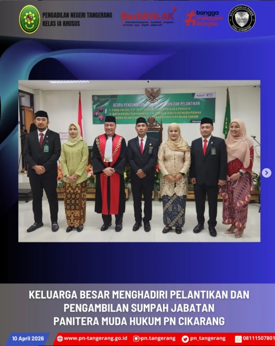 KELUARGA BESAR MENGHADIRI PELANTIKAN DAN PENGAMBILAN SUMPAH JABATAN PANITERA MUDA HUKUM PN CIKARANG