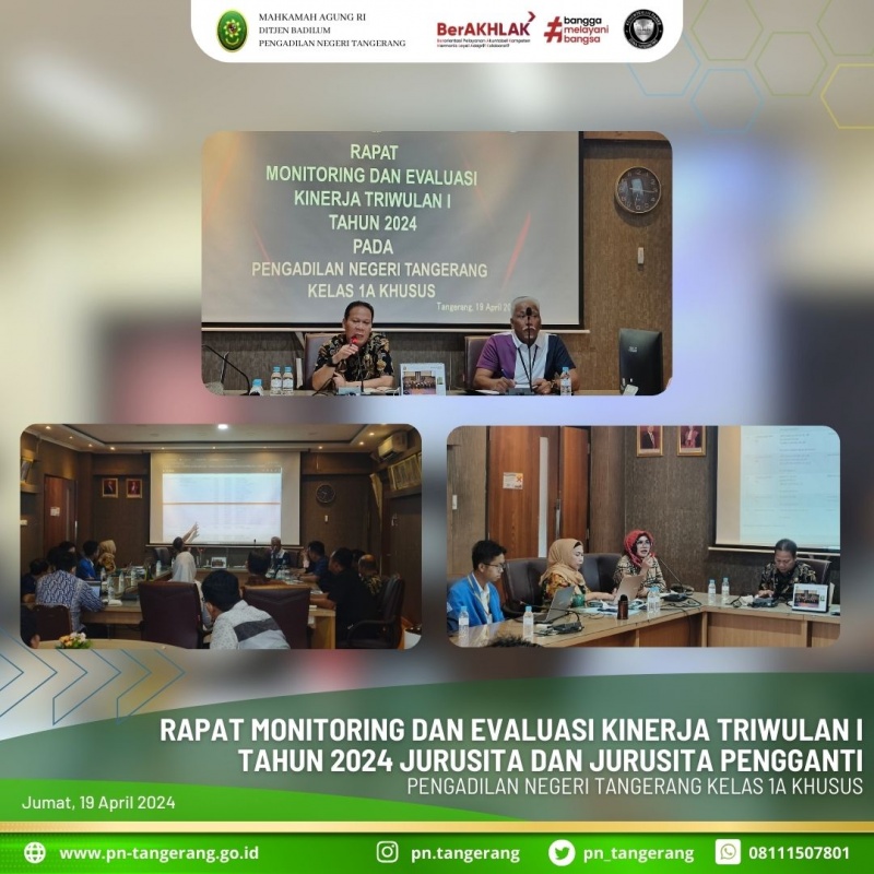 Oleh karena itu, diperlukan evaluasi kinerja sebagai acuan/ pertimbangan perjanjian kerja/ kontrak kerja mereka di tahun berikutnya. Selain itu, kegiatan ini merupakan bagian dari upaya untuk terus meningkatkan kualitas pelayanan yang diberikan kepada para pihak. Evaluasi kinerja ini berfungsi sebagai alat kontrol serta media untuk mengukur efektif dan efiensi kerja, berdasarkan perilaku kerja dan akumulasi kehadiran. Dengan demikian, diharapkan dapat terus memberikan kenyamanan bagi para pihak yang membutuhkan pelayanan terbaik. Selain itu, dalam kegiatan ini juga telah disampaikan monev Triwulan I Tahun 2024. Kegiatan evaluasi kinerja ini diharapkan dapat menjadi momentum bagi kantor Pengadilan Negeri Tangerang untuk terus berkembang dan meningkatkan pelayanan yang diberikan kepada para pihak. (lsl).
