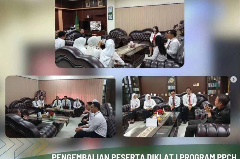 Sehubungan dengan berakhirnya Diklat I Calon Hakim PPCH Terpadu Peradilan Umum, maka pada hari ini Selasa, 16 April 2024 pukul 09.00 WIB s.d selesai, bertempat di ruang Media Center lantai 5 PN Tangerang, seluruh Mentee/Calon Hakim berkumpul untuk mengikuti briefing atau pengarahan pasca Diklat Program Pendidikan dan Pelatihan Calon Hakim Terpadu (PPC) yang diberikan para Mentor PN Tangerang yaitu Bapak/Ibu Hakim Achmad Irfir Rochman, S.H., M.H., Novita Riama, S.H., M.H., dan Kasubbag TUK Bapak H. Bayu F. Bhaskara, S.T., M.H.