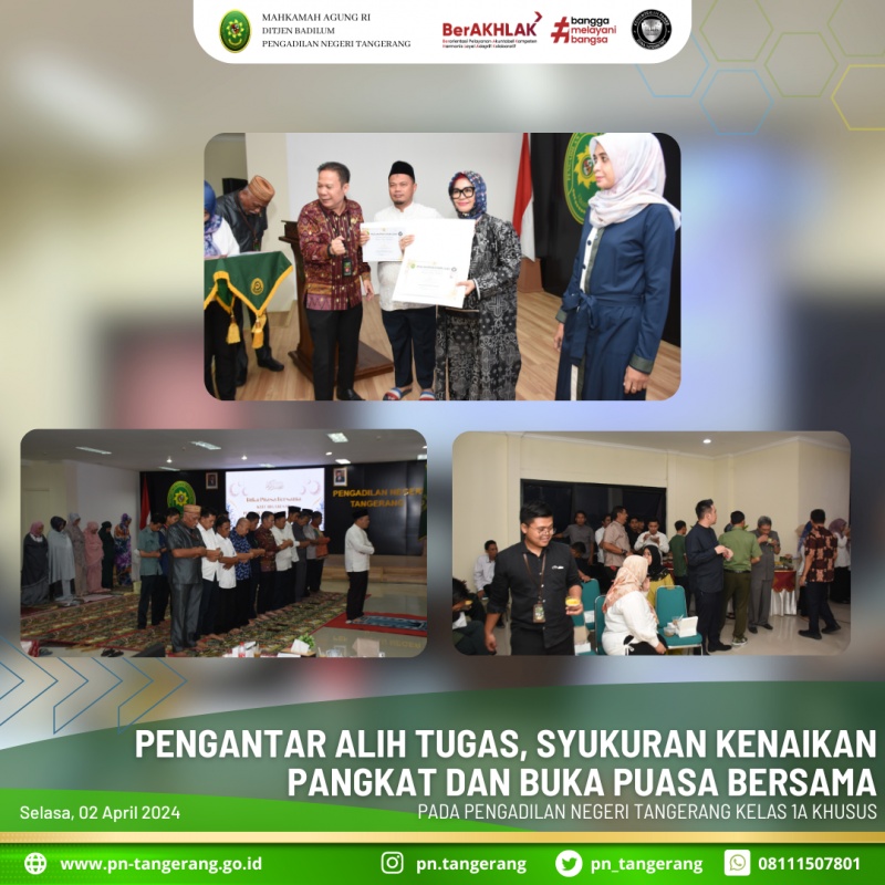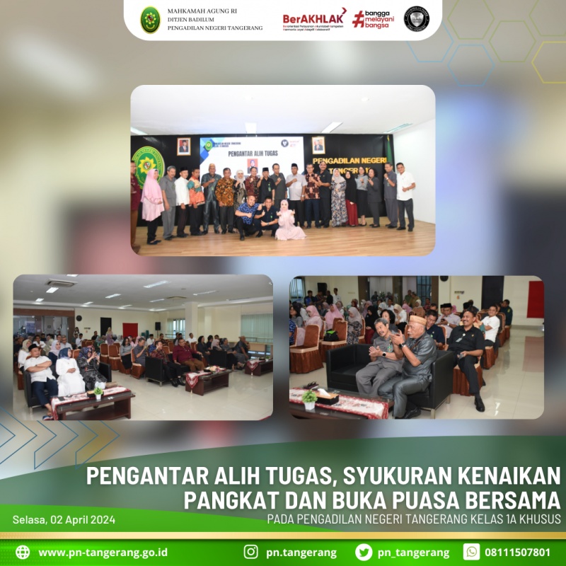 Pada hari Selasa, 2 Maret 2024, pukul 16.00 dilaksanakan kegiatan Pengantar Alih Tugas, Syukuran Kenaikan Pangkat dan Buka Puasa Bersama.