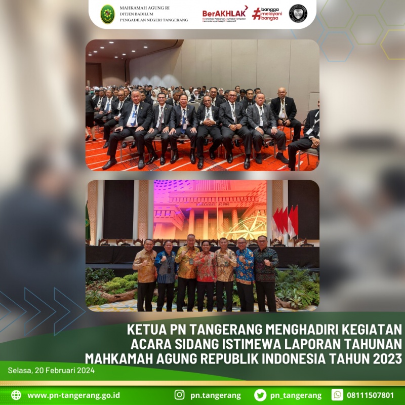 Bertempat di Assembly Hall, JICC Jakarta, Ketua Pengadilan Negeri Tangerang Kelas 1A Khusus, Bapak Dr. FAHMIRON, S.H., M.Hum. Menghadiri kegiatan acara Sidang Istimewa Laporan Tahunan Mahkamah Agung Republik Indonesia Tahun 2023