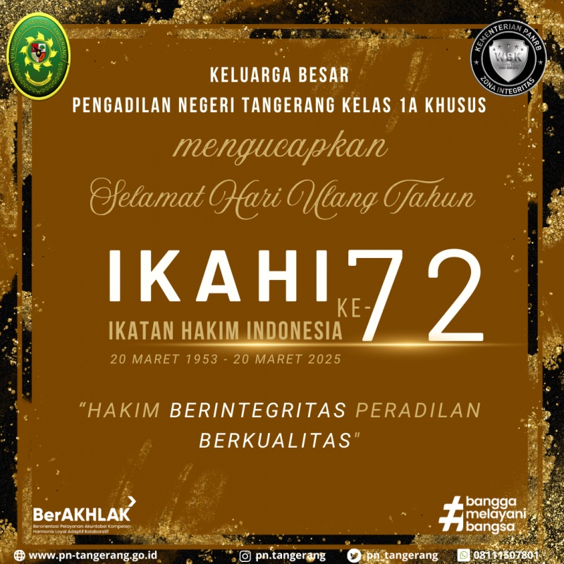 SELAMAT HARI ULANG TAHUN IKAHI (IKATAN HAKIM INDONESIA) KE-72 TAHUN.