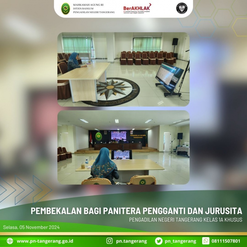 Berdasarkan surat dari Ditjen Badilum Nomor : 780/DJU.2/DL1.10/X/2024 , maka pada Selasa(05/11) diadakan kegiatan pembekalan bagi Panitera, Panitera Muda, Panitera Pengganti dan Jurusita di Lingkungan Direktorat Jendral Peradilan Umum MA-RI.