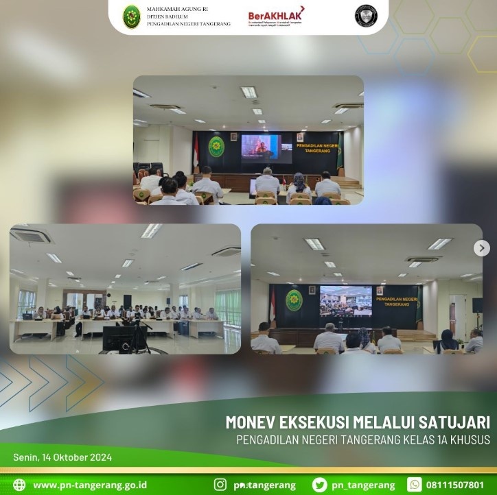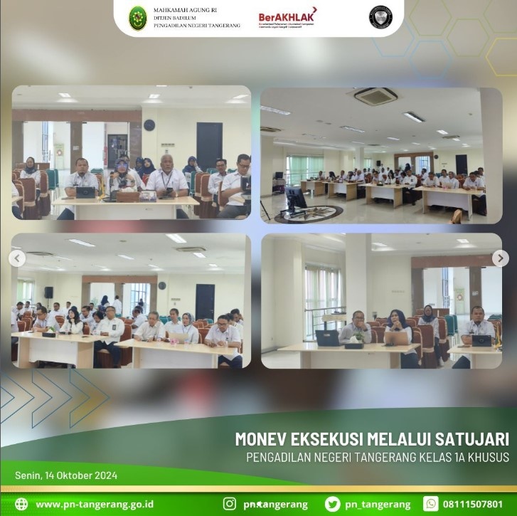 Sehubungan dilaksanakan monitoring kinerja dan pelaksanaan eksekusi di lingkungan Peradilan Umum melalui aplikasi Pada hari Senin, 14 Oktober 2024, pukul 09.00 WIB s.d selesai, bertempat diruang Aula, melalui zoom meeting, berdasarkan surat Undangan Nomor 280/DJU/UND.HM3.1.3/X/2024 dilaksanakan monitoring kinerja dan pelaksanaan eksekusi di lingkungan Peradilan Umum melalui aplikasi Satu Jari oleh Ketua Mahkamah Agung RI YM. Muhammad Syarifuddin.