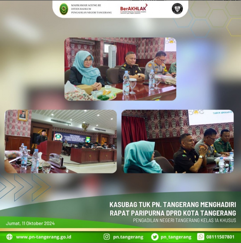 Rapat Paripurna dipimpin oleh Ketua DPRD Kota Tangerang, Rusdi Alam, rapat ini dihadiri oleh para anggota DPRD Kota Tangerang, Nurdin Pj Walikota Tangerang, Sekda Kota Tangerang, serta unsur Forkopimda. Dalam kersempatan ini dihadiri oleh Kepala Sub Bagian Tata Usaha dan Keuangan Pengadilan Negeri Tangerang Henny Fitria.