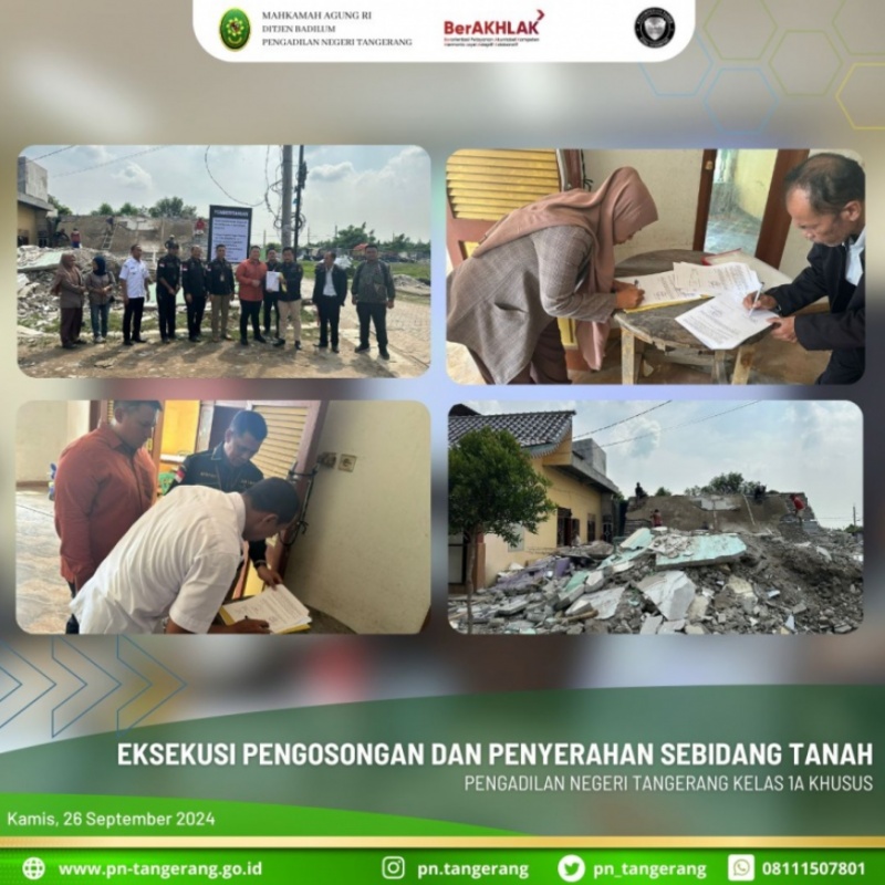 Jurusita Pengadilan Negeri Tangerang telah melakukan Eksekusi Pengosongan dan Penyerahan terhadap perkara – perkara tersebut.