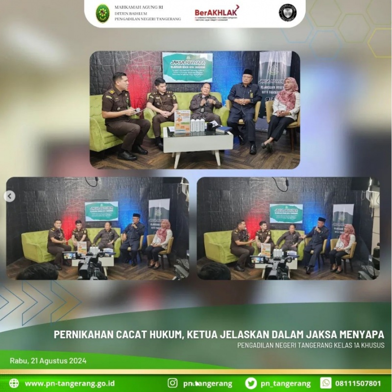 Kejaksaan Negeri (Kejari) Kota Tangerang secara rutin mengadakan Penyuluhan hukum dan Penerangan Hukum Program Jaksa Menyapa Tahun 2024, dalam kesempatan kali ini Kejari Kota Tangerang mengundang Ketua PN Tangerang Fahmiron sebagai Narasumber dalam kegiatan tersebut.