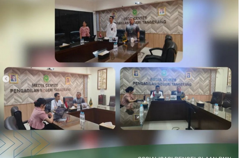Bertempat di Ruang Media Centre Pengadilan Negeri (PN) Tangerang, Sekretaris dan Staff Kesekretariatan mengikuti acara zoom meeting dengan Mahkamah Agung terkait Pengajuan Pengelolaan Barang Milik Negara (BMN) pada SIMAN v2