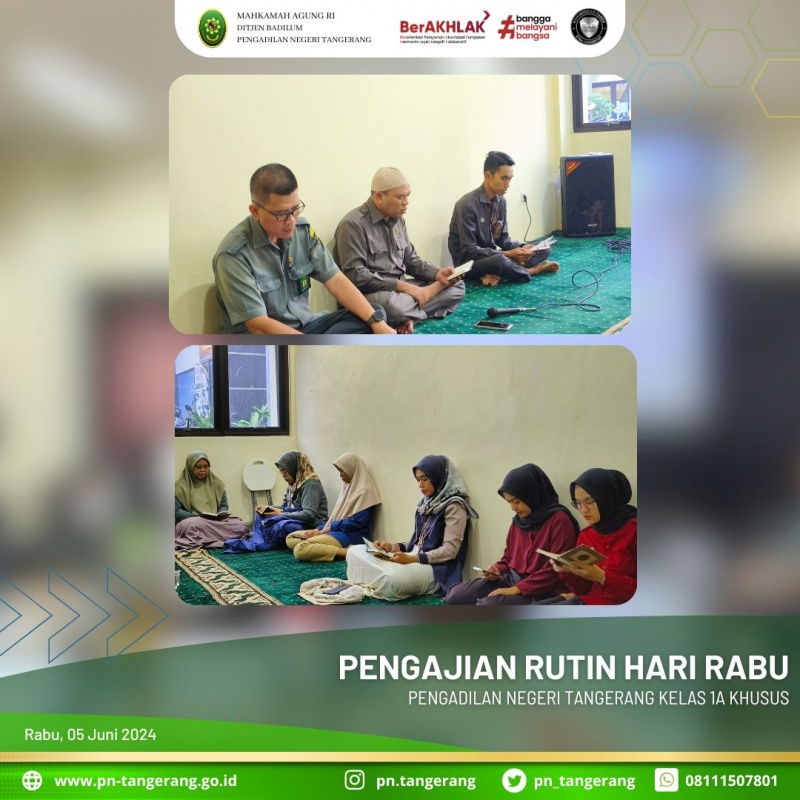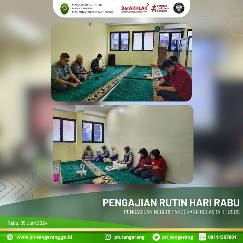 Pengajian ini dilaksanakan dalam rangka membina keimanan dan menambah ilmu agama segenap muslimin dan muslimah di lingkungan PN Tangerang. (lsl).