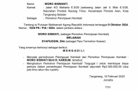 RELAAS PEMBEIRTAHUAN PERNYATAAN PERMOHONAN BANDING NO. 787/Pdt.G/2024/PN Tng KEPADA TERGUGAT III