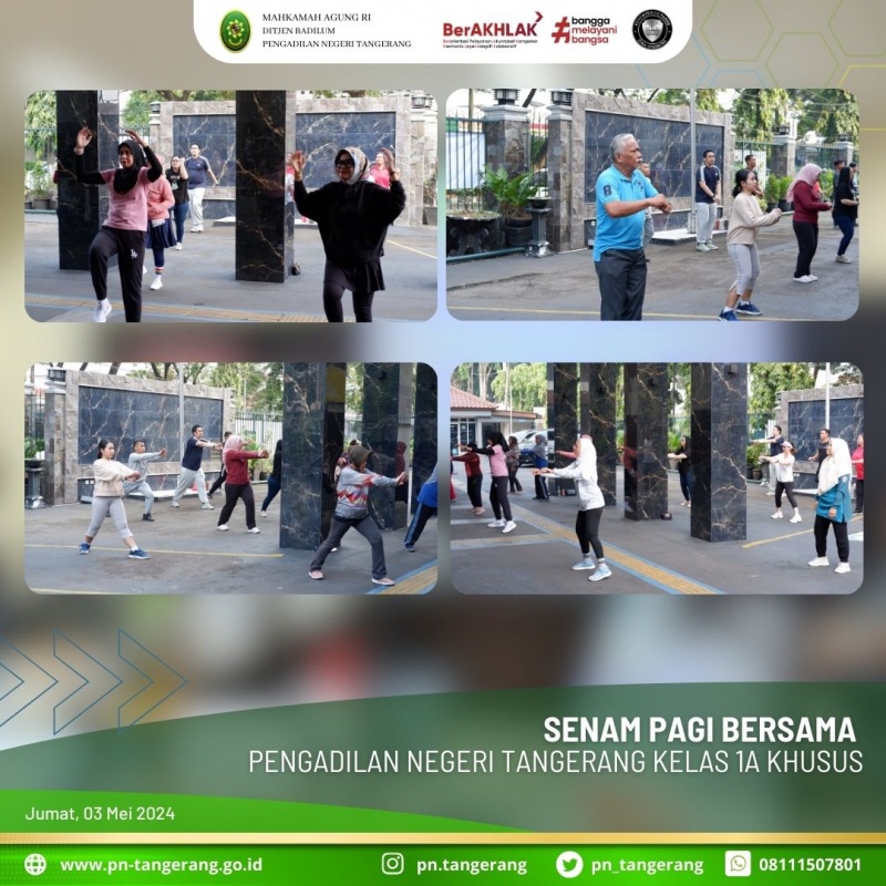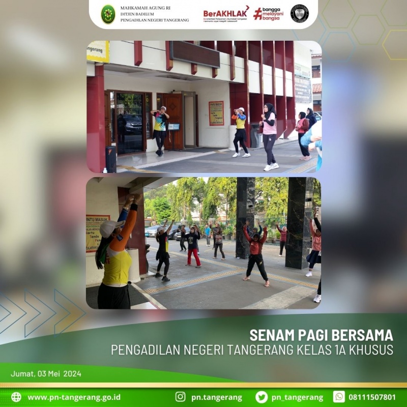 Senam Jum’at Pagi pada Pengadilan Negeri Tangerang Kelas 1A Khusus merupakan salah satu upaya dalam menjaga kesehatan tubuh dan membangun semangat kerja sebelum memulai aktivitas kantor.