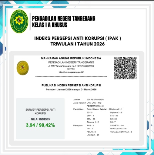 INDEKS PERSEPSI ANTI KORUPSI (IPAK) TRIWULAN I TAHUN 2026