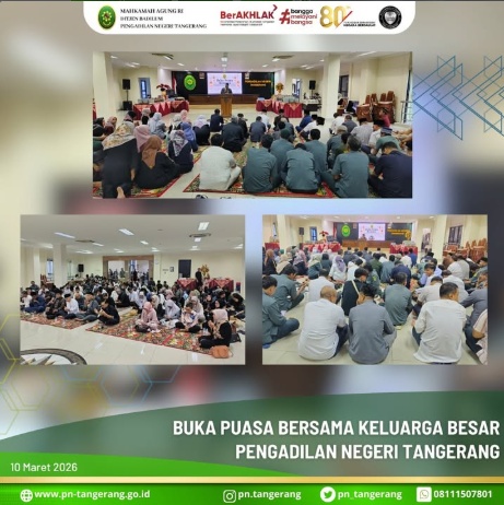 Dalam rangka mempererat tali silaturahmi dan kebersamaan di bulan suci Ramadan, Keluarga Besar Pengadilan Negeri Tangerang melaksanakan kegiatan Buka Puasa Bersama di aula lt.5 pada tanggal 10 Maret 2026.