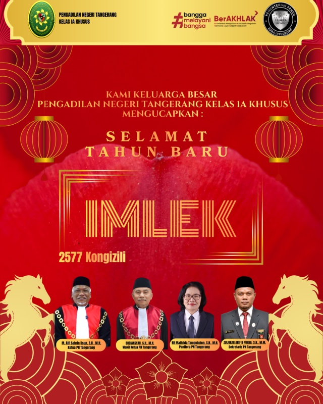 Keluarga Besar Pengadilan Negeri Tangerang Kelas IA Khusus mengucapkan selamat merayakan Tahun Baru Imlek 2577 Kongzili.
