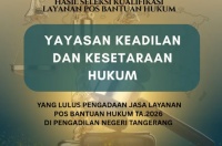 Berdasarkan hasil seleksi kualifikasi pengadaan jasa layanan Pos Bantuan Hukum (Posbakum), Pengadilan Negeri Tangerang Kelas IA kepada: ⚖️ YAYASAN KEADILAN DAN KESETARAAN HUKUM ⚖️ Sebagai lembaga yang lulus seleksi untuk Tahun Anggaran .......
