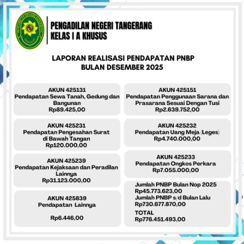 Berikut adalah Laporan Realisasi Pendapatan PNBP Bulan Desember 2025