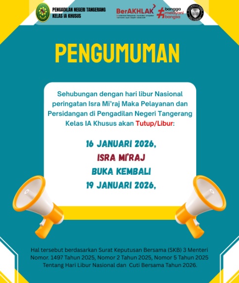 Pelayanan dan persidangan di Pengadilan Negeri Tangerang akan Tutup/Libur dan Buka pada :