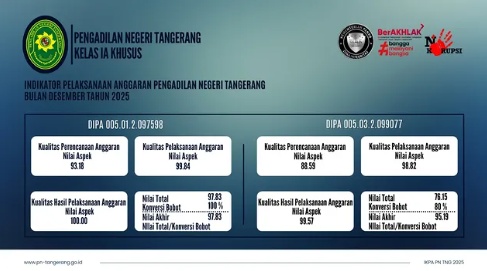 Berikut Laporan Indikator Pelaksanaan Anggaran PN Tangerang Bulan Desember 2025