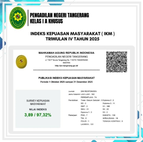 Berikut adalah indeks kepuasan masyarakat (IKM) triwulan IV periode 1 Oktober 2025 sampai 31 Desember 2025
