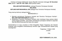 RELAAS PEMBERITAHUAN ISI PUTUSAN MA RI (SURAT TERCATAT) Nomor: 1436 PK / Pdt / 2024 Jo. No. 3693 K/Pdt/2023 Jo. Nomor : 23/PDT/2023/PT.BTN Jo. Nomor : 1401/Pdt.G/2021/PN Tng