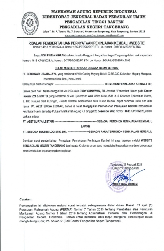 PEMBERITAHUAN PERNYATAAN PK Perkara Nomor 904_Pdt.G_2021_PN.Tng (An. PT. BERDIKARI).pdf