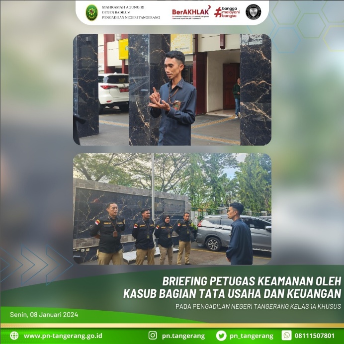 Semoga hal yang dilakukan oleh petugas keamanan menjadi awal yang baik untuk memberi contoh kepada semua pegawai PN Tangerang dan masyarakat pencari keadilan untuk memperhatikan dan menjaga keamanan dilingkungan Pengadilan Negeri Tangerang.